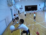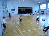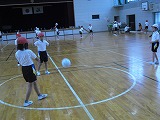 3年生が体育でソフトバレーボールを始めました。まずはボールに慣れるために、投げたりとったり弾ませたりとグループで遊びます。