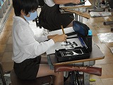 4年生が書写で、「雲」という字を書いていました。最初に「雨」という字と「雨冠」の違いを確認して、手本の字の筆遣いを確かめながら取り組んでいました。