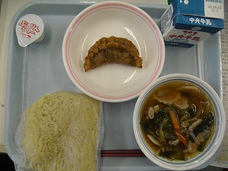 五目ラーメン 牛乳 津餃子 ひとくちリンゴゼリー