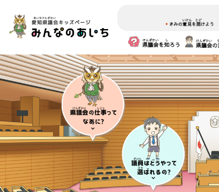 愛知県議会では、小学校高学年向けに、県議会に対する理解と関心を高めてもらいたいと、「愛知県議会キッズページ」を開設したそうです。