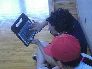 子どもたちの練習のようすを、先生がタブレットで撮影して、気をつけるとよい点を一人ひとり指導していました。