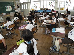 3年生は算数で「一万を超える数」の学習をしていました。位取りの図を見ながら、「一十百千一万十万百万千万一億十憶百億千憶」と早口言葉みたいに確認しています。慣れていないとつい、「万」のところで「億」と言ったり、「億」のところで「万」と言ったりしてしまいます。