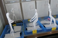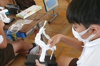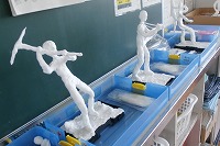 6年生が図工で「将来の自分」の像を紙粘土で作っています。いろいろな動きのあるデザインになっているので、まだ作っている途中ですが見ていて楽しくなります。