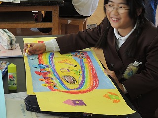 3年生は、魔法の扉の中の絵の仕上げに入っています。