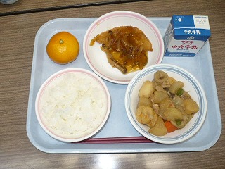 ご飯 牛乳 関東煮 アジフライの野菜あんかけ ミカン