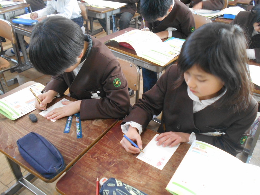 3年生は、年賀状の書き方を学習し、年賀状を書いています。