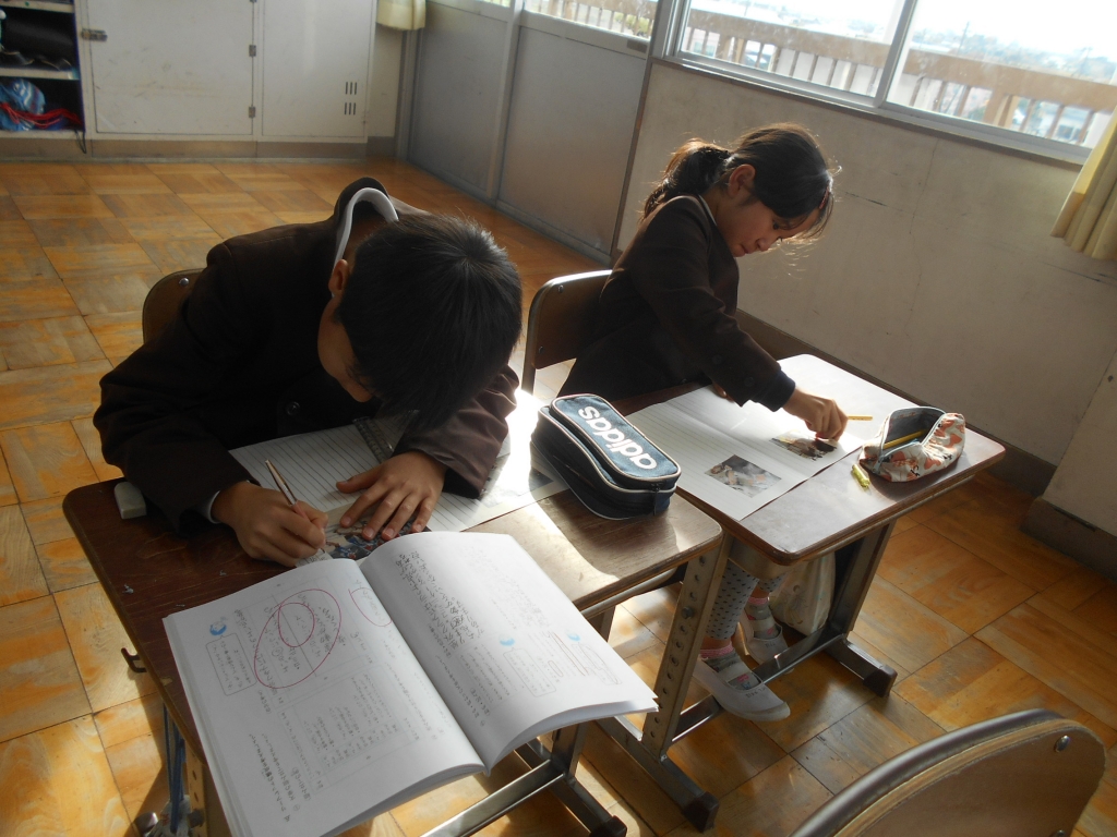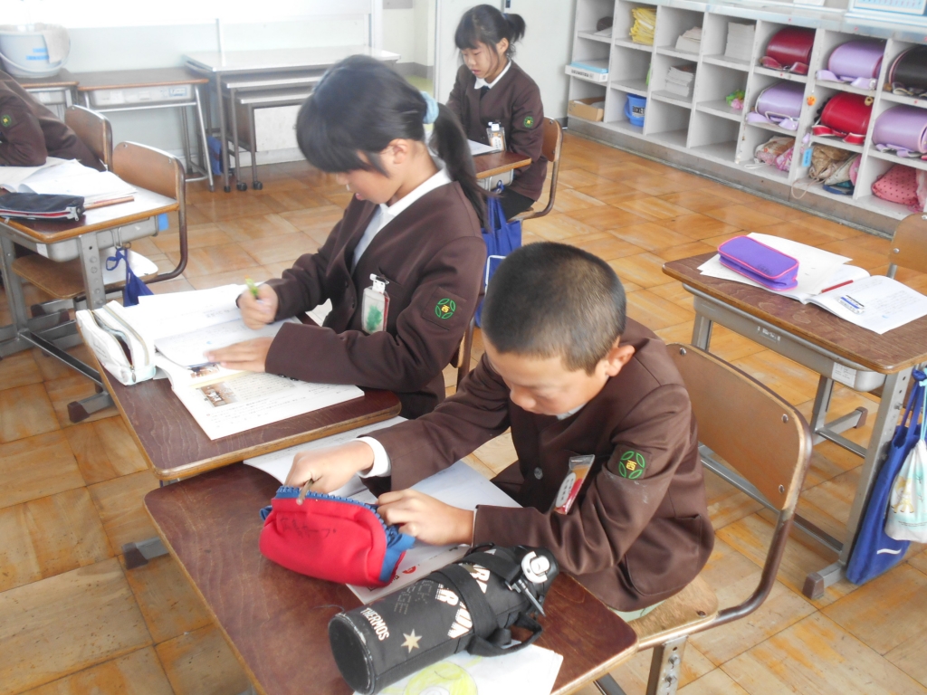 4年生は、国語で「クラブ活動についてのリーフレット」を作成します。構成を考えて、書き始めます。