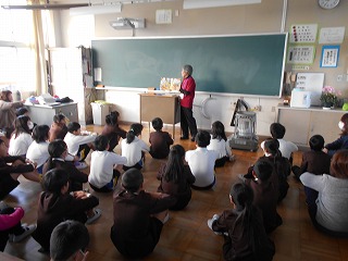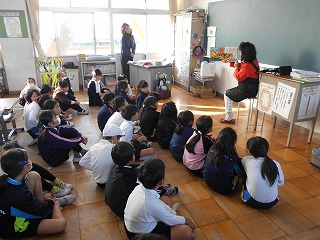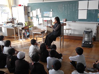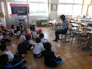 令和元年最後の読み聞かせです。完走大会の前にみんな心を落ち着けてリラックスして聞いていました。