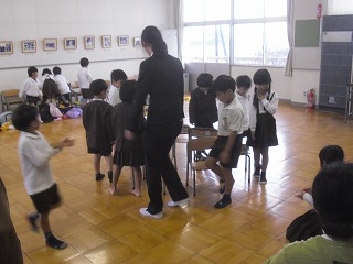 1カ月間の教育実習が今日で終わります。実習生が担当した1年生と5年生はそれぞれ学活でお別れレクリエーションを行いました。