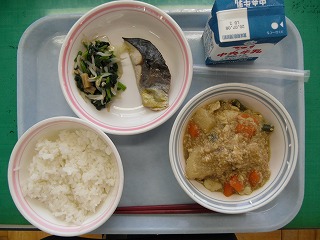 ご飯 牛乳 大根のそぼろ煮 シイラの塩焼き ほうれん草となめたけの和え物