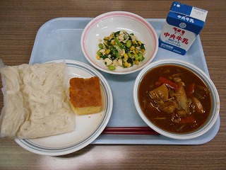 、カロテンが多く含まれていて、風邪予防にも効果的です。今日は、「白和え(しらあえ)」という、豆腐を使った和え物の中に入っています。トウモロコシや枝豆も入っているので食べやすくなっています。おいしい旬の味を召し上がれ。