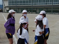 運動会の花形種目、紅白リレーの練習が始まりました。紅白リレーは紅白それぞれの学年代表の男女が、バトンをつないでリレーする競技です。学年ごとの協議ではないので、選ばれた代表選手を集めて練習します。まずは競技の説明と、顔合わせです。違う学年でも同じチームのメンバーです。心を合わせて練習して本番に備えましょう。