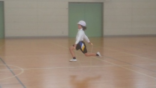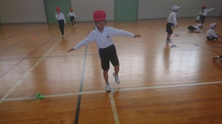 また、白線の上で片足で立って静止(右足、左足)→目をつぶって片足バランス→目をつぶって片足のひざを高く上げて・・・と難易度をあげていきました。