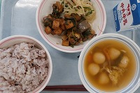 五穀ご飯 牛乳 蛸と厚揚げの炒め煮 春雨サラダ 海老しんじょ汁