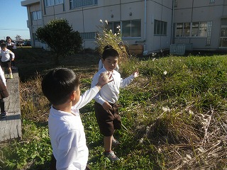 1年生がビオトープで、現在咲いている花を探しました。ずいぶん寒くなってきて、あまりないのかと思いましたが、みんないろいろなところで花が咲いているのを見つけました。
