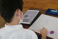 5年生が国語の「大造じいさんとガン」を読み、いろいろな場面を表すために、ガンの絵を描いていました。特に羽の形にこだわり、タブレットでいろいろながんの写真を探して、自分の描きたい場面に合わせた羽をスケッチしていました。