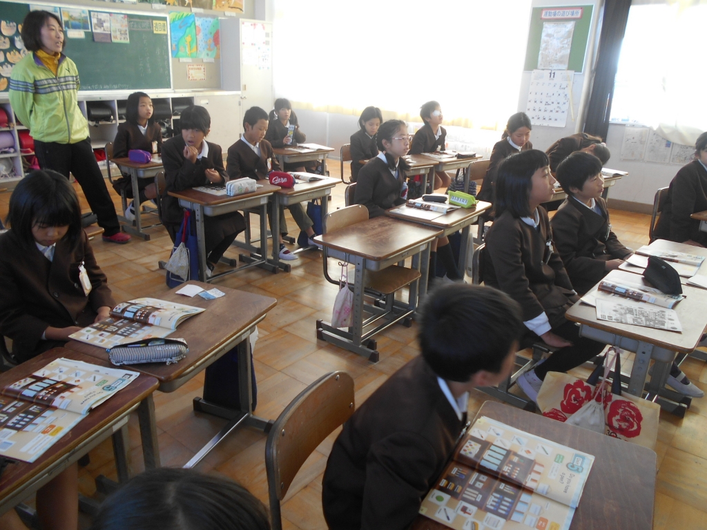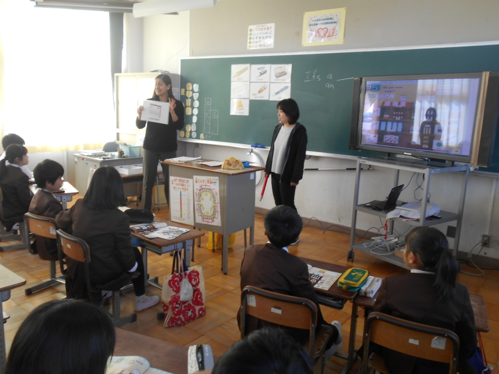 4年生は外国語活動で、絵の中に何がいくつあるか考えました。