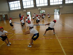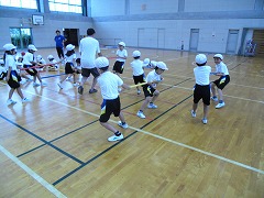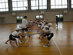 いろいろな相手と交代しながら何度も行いました。けがをしてしまうような危険な体勢にならないように、その都度全体に注意しながら行いました。