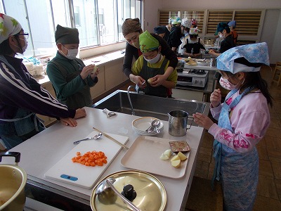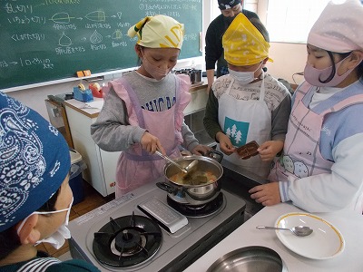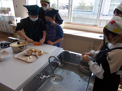 また、本日は立南っ子サポーター(学習支援ボランティア)の皆様5名にご協力いただきました。包丁を使う場面や火を扱う場面でも、子どもたちにやさしく声をかけながら見守っていただきました。後片付けまでお手伝いいただき、心より感謝申し上げます。