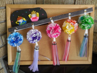 今月は七夕がテーマです。用務員の方が忙しい中、折り紙で作成してくださいました。