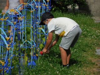 2年生は、ミニトマト・ピーマン・なすを育てています。