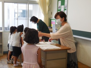 中には、ポスターを見せてくれた子もいました。お母さんに色の付け方を教えてもらって、一生懸命がんばったそうです。夏休みの宿題を通し、子どもたちは「お父さん、お母さんって、すごいな」「さすが!」と思えることがたくさんあるようです。1枚のポスターから、親子で相談しながらがんばって描いた様子が目に浮かぶようです。毎日ありがとうございます。