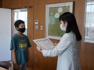 6年生から男女1名ずつが表彰されました。ご両親からいただいた大切な宝物であるピカピカの歯をこれからも大切にしていきましょう。