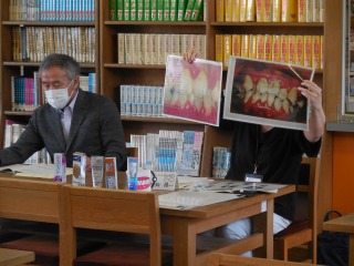 歯科衛生士の藤澤様より愛西市の小学校の現状を教えていただき、本校児童が定期健診にきちんと通い、歯や口の健康を守っている意識の高いご家庭が多いことをお話しいただきました。