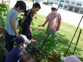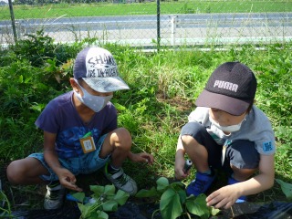 「このきゅうり、平仮名のしに似ているね」「これはカタカナのノだね」などにぎやかな収穫となりました。