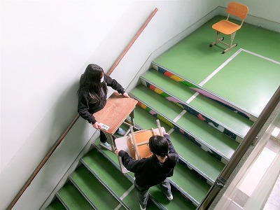 6年生は、5時間目に奉仕作業第1弾として、音楽室や学習室の机、椅子の移動してくれました。とても、ありがたいです。