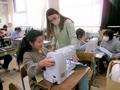 立南っ子サポーター(学習支援ボランティア)の方にお越しいただいて、5年生の家庭科「エプロンづくり」でミシンの使い方等の支援をしていただきました。