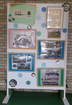 今日から12月です。来賓玄関の飾りも12月バージョンになりました。今回の飾りは、先月に立田中学校の生徒が職場体験に来たときに、用務員さんのお手伝いで、作成したクリスマスツリーです。
