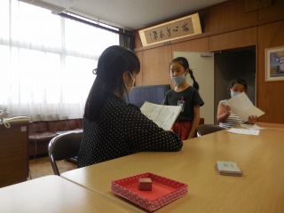 今日は、2年生とこっそりチャレンジタイムの予約はしていたのですが、最初にやってきたのは、1年生でした。前回合格できなかったので、一生懸命早口言葉を覚えたそうです。なんてすてきなんでしょう!今日も2年生のカメラマンに上手に撮影してもらいました。2年生の子の中に「蜘蛛の糸」をアナウンサーのようにすらすら暗唱した子がいました。すばらしいことです。自分で挑戦してみよう!合格するまでがんばろうという思いは、本当に大切なものです。リベンジ、どんどんしてください!!
