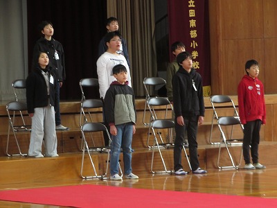 卒業式に在校生は参加しませんが、総練習は、5年生が参加しました。