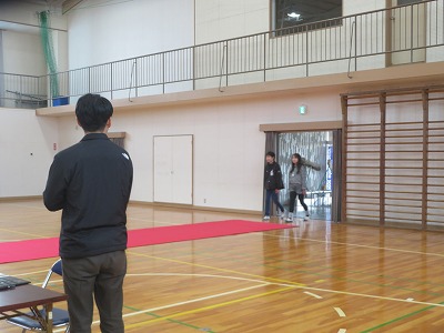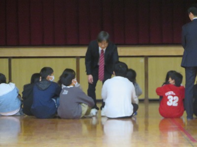 中学校生活の説明を体育館で聞きました。小学校とは違って、広い広い体育館で待っていると、担当の先生や校長先生が、緊張している子どもたちを和ませてくださいました。中学校の一年間の様子がよく分かりました。