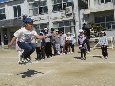 今日の立南でもタイムは、この指とまれプロジェクトで「大なわ大会をしたい人」でした。1年生2人による企画です。大なわ跳びを100回跳ぶように目標を設定しました。たくさんの人たちが集まり、縄の回し手は、先生と支援員さんです。みんな、学年を超えて楽しく大縄跳びをしました。見事100回跳ぶことができました!