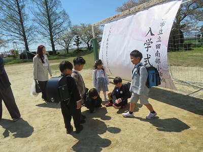 学校の運動場では、桜がきれいに咲いています。他にも、パンジーやチューリップなどがきれいに咲き、立南っ子を待ちわびています。