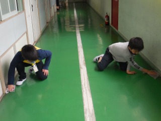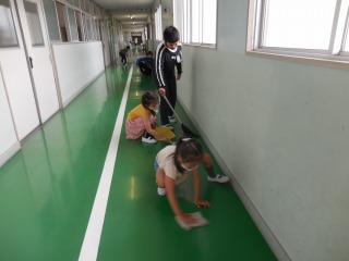 5月24日(月)掃除の様子を見に行きました。子どもたちは、毎日きれいな学校で生活するため一生懸命掃除をしています。床を磨く様子はどの学年もすばらしいです。