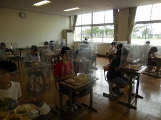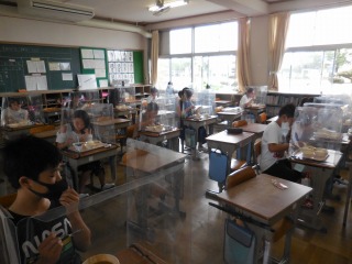 6年生は、本日の給食より2クラスで行っております。場所は会議室です。涼しい場所で快適に学習が進むよう配慮させていただきました。他学年においては、しっかり座席の間を広げて学習や給食を進めていけるよう教職員間の共通理解を深めていきます。
