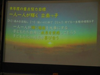 そんな日でしたが、児童下校後、教職員のための研修会がありました。講師に日本ペップトーク普及協会の鈴木孝様をお迎えし、ペップトークについて学びました。