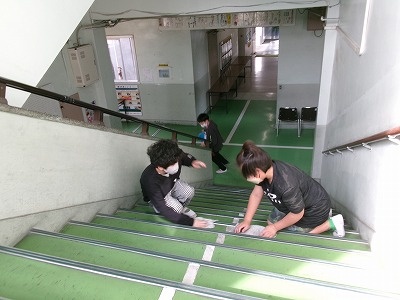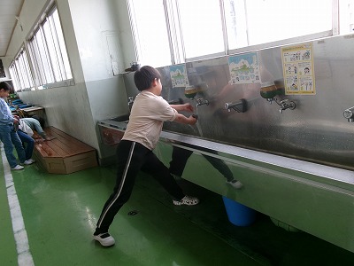 4年生は、ワックスがけをする人、それぞれの掃除担当の場所を掃除する人などに分かれて活動しました。普段できないところを丁寧に掃除しています。