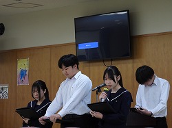 授業参観では、2年生が上級学校調べの発表会、1年生では情報モラルについて考える活動を、それぞれご覧いただきました。続く学年合唱発表会では、1・2年生の合唱をお聞きいただきました。それぞれの場面で、これまで積み重ねてきた成果をご覧いただけたなら幸いです。