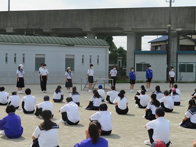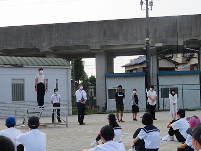 今の状況では、なかなか全校で集まる機会がないので、まずは今年度4月に佐織中学校に赴任してみえた先生方に、簡単に一人ずつ自己紹介をしてもらいました。