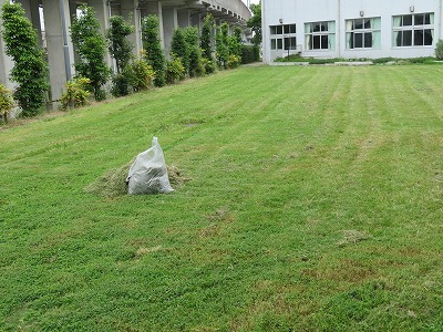 ふと窓の外に目をやると、ランチルーム前の中庭がきれいに刈られていました。