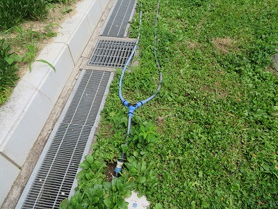 中庭のグリーンカーテンがすくすくと育つように、水遣りが効率よくできる工夫がされています。
