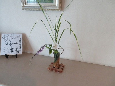 来賓玄関を入ったところには、さりげなく花が生けられています。