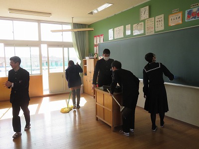 出願の子たちが出発したあとの学校では、出願のない子たちが協力し合って、いつもより人が少ない分を補おうと一生懸命掃除に取り組んでいました。