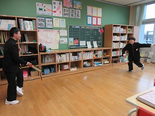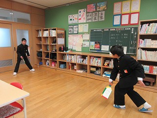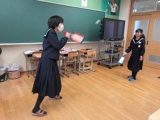 何を羽根にするといいか…、さおり学級にある毛糸のポンポン、ビニル袋風船、学校祭で使ったボンボンを短く切ったものなど、試行錯誤しました。それぞれのチームが気に入った羽根で、お正月遊びをす楽しむことができました。