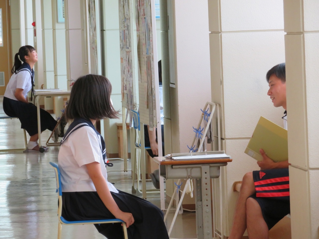 生徒が困っていることや悩んでいること、学校生活におけるこれからの目標や進路についてなどを話し合います。この「教育相談週間」を通じて、生徒と教師がより良い関係でつながり、佐織中学校の生徒たちが、生き生きと学校生活を送ることができるようにしていきたいです。