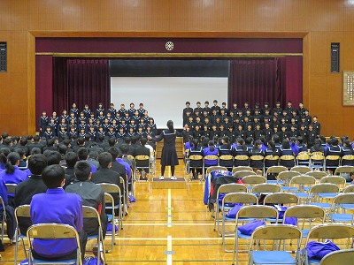 続いては、1年生からの出し物です。寸劇と学年合唱を発表しました。